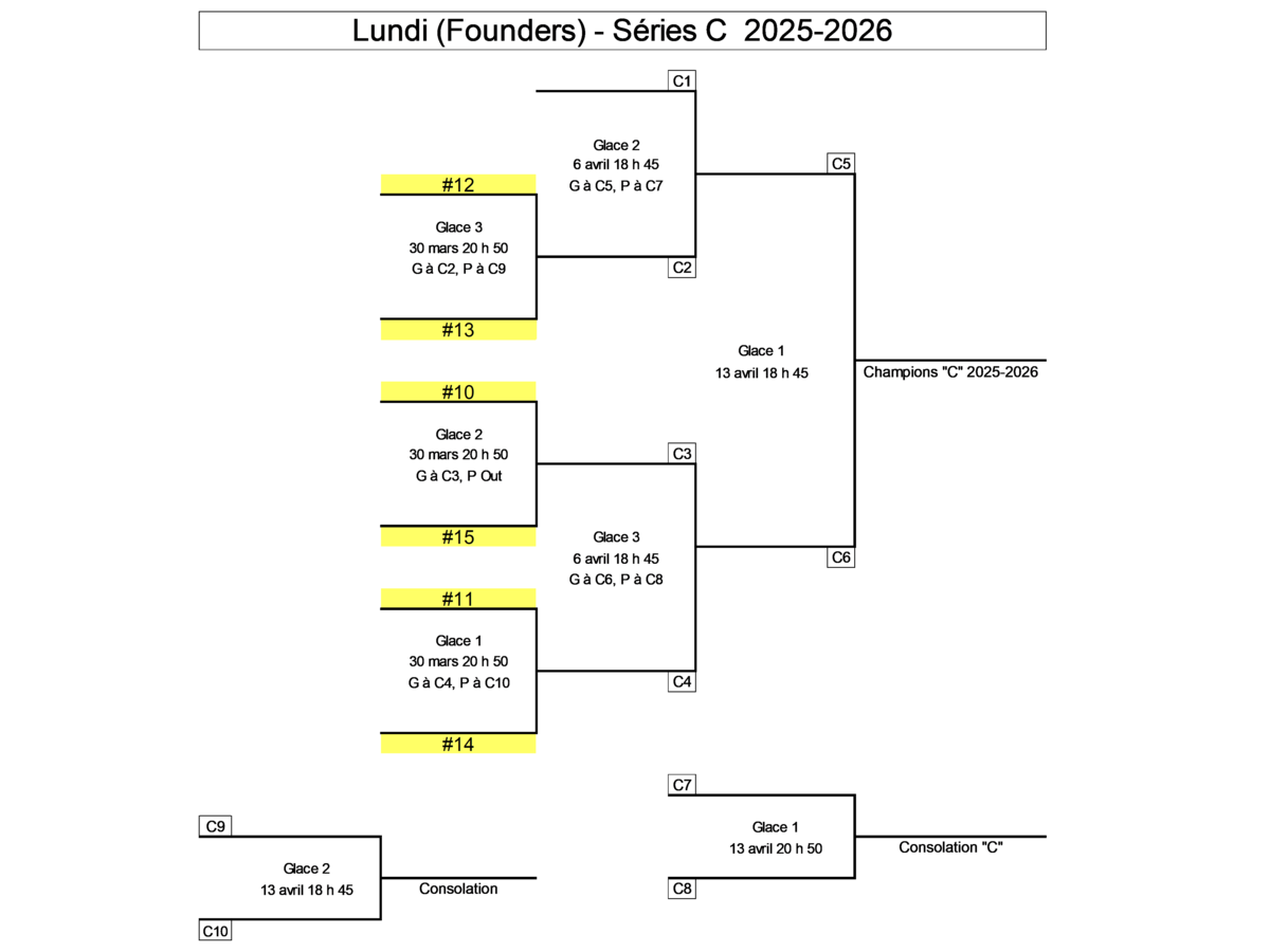 | C2 - Végiard | C3 - Bergeron | 18:45 | Glace 1 |
